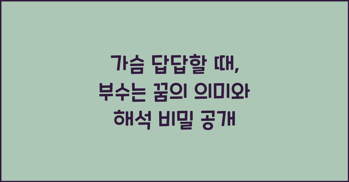 가끔 우리는 꿈을 통해 무언가를 느끼고, 어떤 메시지를 받을 때가 있습니다. 특히 '가슴 답답할 때, 부수는 꿈의 의미'는 깊은 심리적 해석을 요구하는 주제입니다. 이 꿈을 꾸는 것은 종종 우리 마음속의 억누른 감정이나 해소되지 않은 갈증을 뜻하는 경우가 많습니다. 과연 이 꿈은 무엇을 의미할까요? 꿈의 배경과 주제를 살펴보고 이를 통해 우리 내면의 소리를 이해해보겠습니다.