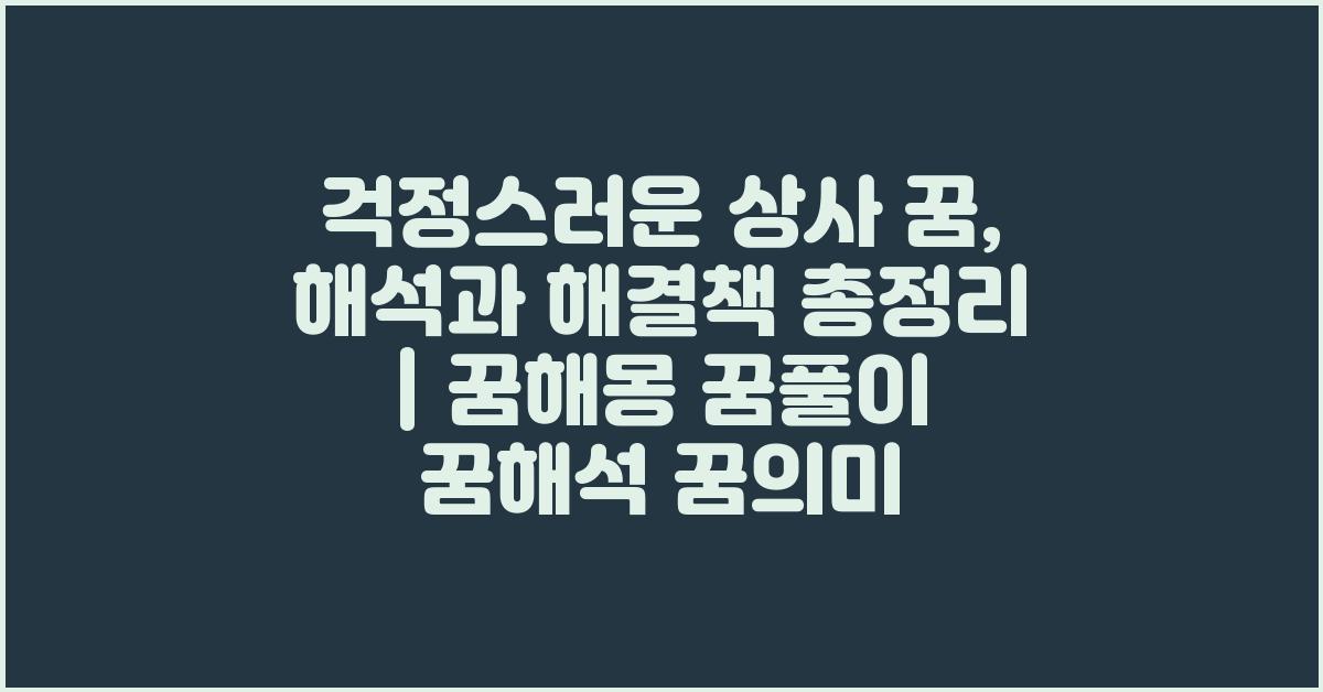 꿈에서의 상사와의 관계를 통해 우리는 다양한 감정을 느끼고, 이를 다시 분석하며 성장할 기회를 찾을 수 있습니다. 걱정스러운 상사 꿈, 해결책은 무엇일까? | 꿈해몽 꿈풀이 꿈해석 꿈의미를 이해하는 것은 한 단계 나아가는 과정입니다. 이러한 꿈을 통해 불안의 감정을 인식하고, 그것을 해결하기 위한 단계를 밟아 나가보세요. 상사와의 관계뿐만 아니라 자신의 걱정과 불안을 넘어서 성장하는 밑거름이 될 것입니다.