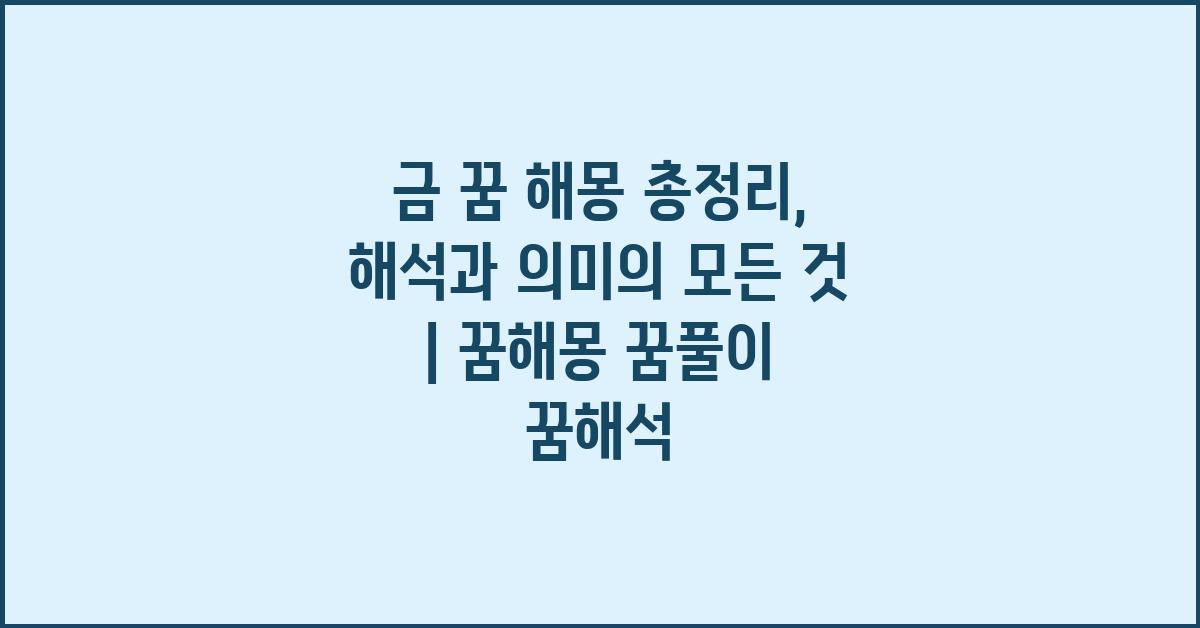 꿈은 우리에게 많은 것을 알려주는 신비로운 세계입니다. 가끔은 낯설고, 또 가끔은 익숙한 장면들로 가득 차 있죠. 특히 '금'이라는 상징은 더 많은 의미를 지니고 있습니다. 그렇다면 '금 꿈 해몽 총정리: 모든 궁금증 해결 | 꿈해몽 꿈풀이 꿈해석 꿈의미'의 내용을 함께 알아보겠습니다. 금이라는 소재가 주는 여러 가지 해석은 꿈해몽에서도 특히 매력적입니다. 한 번쯤 겪어본 꿈일 수 있으니, 더 깊이 파고들어보면 좋을 것 같아요.