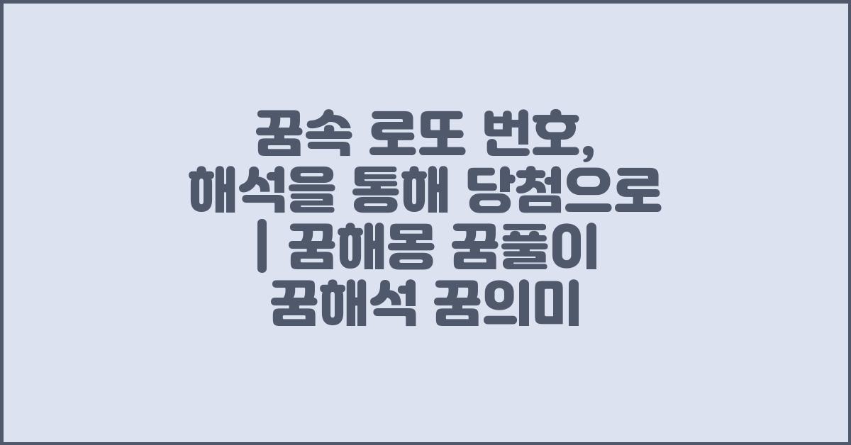 A1: 꿈속 로또 번호는 그 자체로 정확하다고 말할 수는 없지만, 여러분의 무의식이 보내는 메시지를 의미합니다.