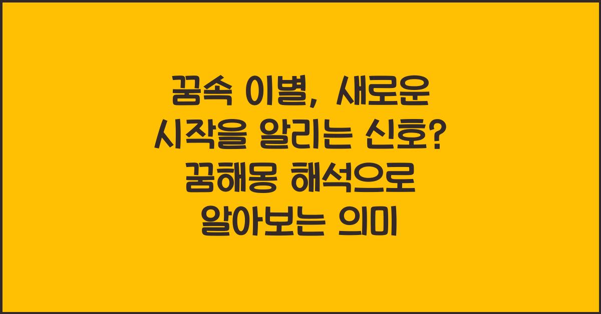 여러분, 꿈속에서 이별하는 장면을 경험해본 적 있으신가요? 💤 꿈속 이별, 새로운 시작을 알리는 신호? | 꿈해몽 꿈풀이 꿈해석 꿈의미에 대한 고민이 드는 순간, 우리는 새로운 변화가 필요하다는 신호가 아닐까 싶습니다. 꿈은 우리의 무의식이 남긴 메시지를 담고 있으며, 이별이라는 테마는 특히 깊은 의미를 내포하고 있습니다. 꿈속 이별은 단순히 과거의 연인을 잊는 것이 아니라, 새로운 단계를 맞이할 준비가 되었음을 의미할 수 있습니다.