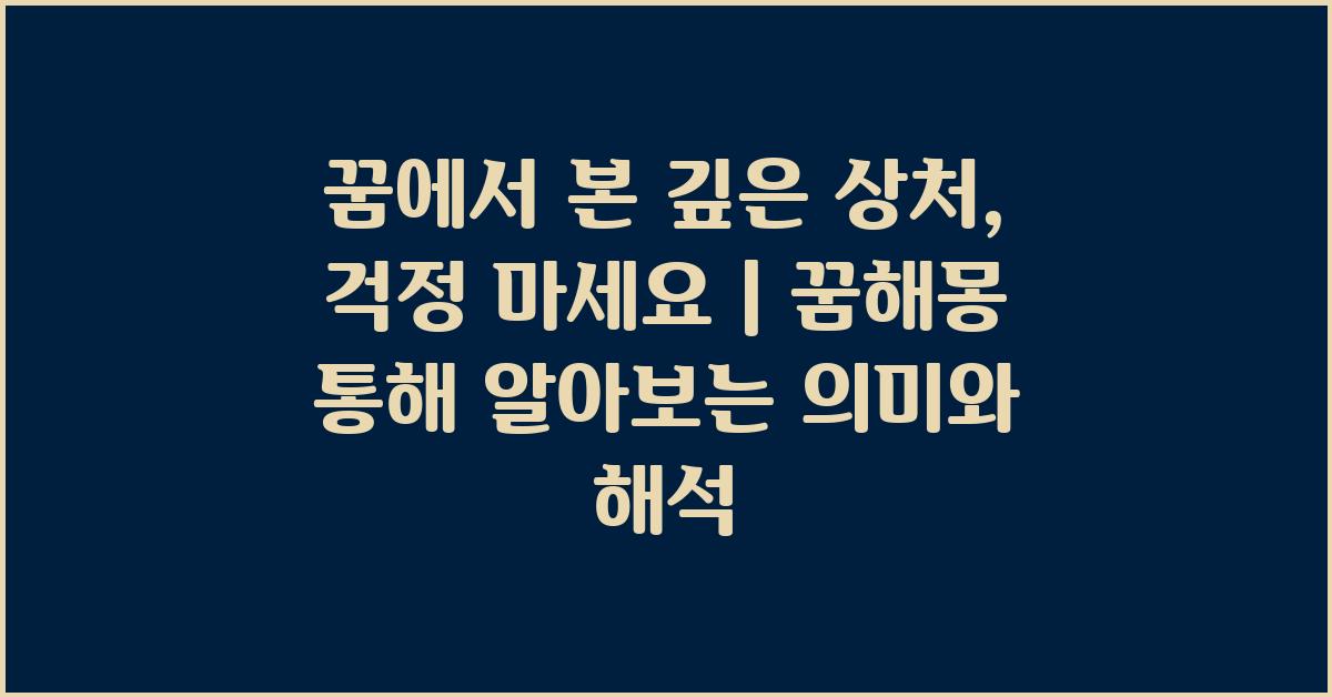 꿈에서의 상처는 감정을 잘 드러내주는 메타포입니다. 우리 삶에서 겪는 해결되지 않은 갈등이나 과거의 아픔이 나타나기도 하죠. 이러한 꿈이 불안과 걱정을 유발하더라도, 염려하지 마세요. 꿈해몽을 통해 상처의 진짜 의미와 해석을 찾아볼 수 있습니다.