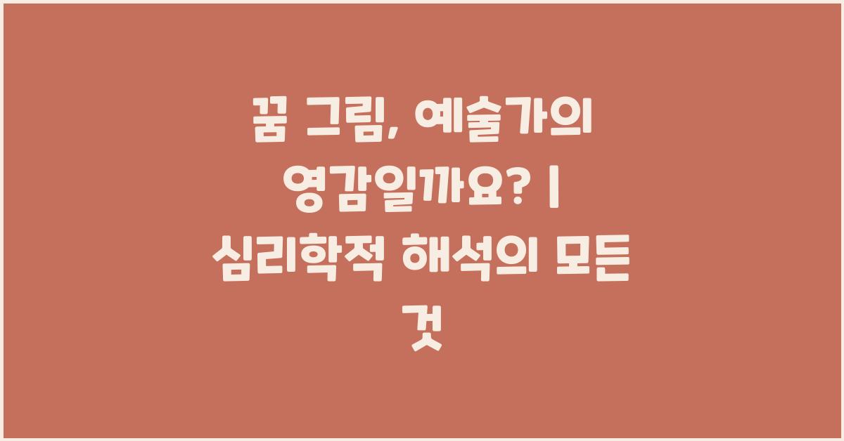 꿈은 우리 내면의 목소리이자 감정의 표현입니다. 많은 이들이 꿈을 통해 감춰진 진실이나, 다가올 사건을 예감하기도 합니다. 그중에서도 꿈에서 그려지는 그림들은 예술가들에게 특별한 영감을 주기도 하죠. 과연 꿈 그림, 예술가의 영감일까요? | 꿈해몽 꿈풀이 꿈해석 꿈의미라는 질문에 대한 심리학적 해석을 시작해 보겠습니다.