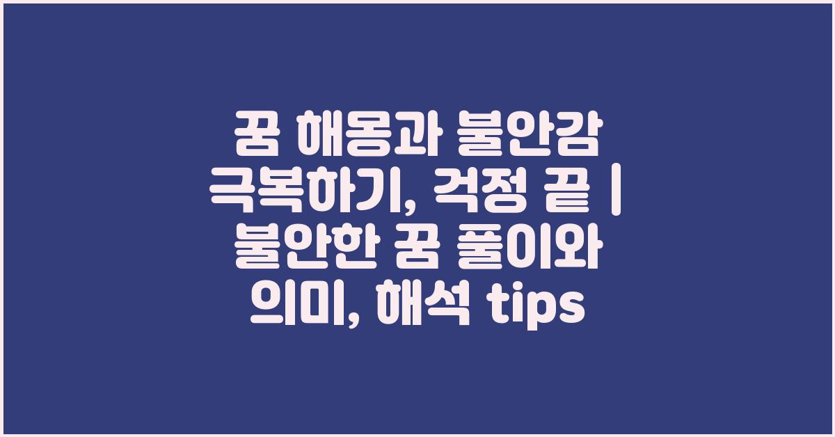 꿈은 우리에게 자연스럽게 일어나는 현상으로, 많은 사랑받는 주제입니다. 특히 꿈 해몽에 대한 관심이 높아지는 이유는 단순히 호기심 때문만이 아닙니다. 꿈 속에서 느끼는 감정들은 우리의 현실에서도 큰 영향을 미칠 수 있기 때문입니다. 불안한 꿈을 꾼 후 일어나는 불편한 기분, 여러분도 경험해보셨죠? 꿈 해몽과 불안감 극복하기: 걱정 끝 | 꿈해몽 꿈풀이 꿈해석 꿈의미에 대해 함께 이야기해보겠습니다.