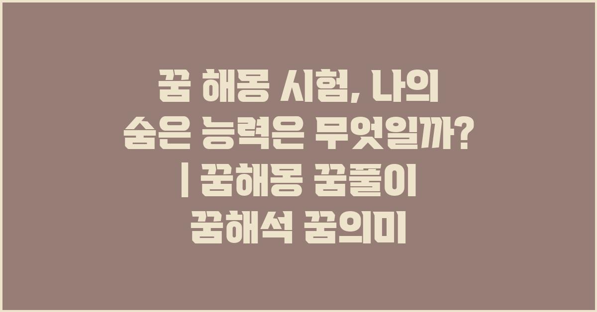꿈 해몽은 단순히 꿈을 풀이하는 것에 그치지 않고, 나의 내면을 탐구하는 소중한 과정입니다. 꿈 해몽 시험: 당신의 잠재된 가능성은? | 꿈해몽 꿈풀이 꿈해석 꿈의미를 통해 우리는 무엇을 찾아낼 수 있을까요? 바로 우리 자신이 가진 가능성과 꿈을 직시하게 되는 것입니다. 오늘밤의 꿈은 어떤 메시지를 가지고 있을까요?