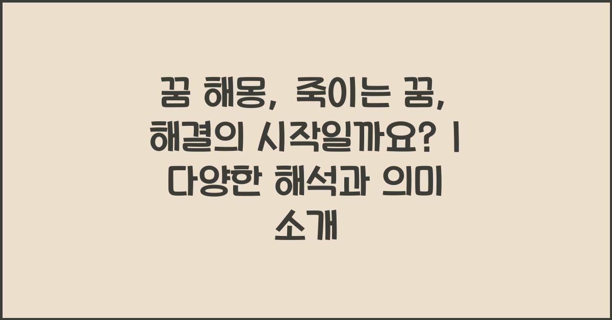 죽이는 꿈에 대해서 많은 이들이 궁금해합니다. 실제로 이러한 꿈이 어떤 의미를 가질까요? 이번 포스팅에서는 꿈 해몽, 죽이는 꿈의 다양한 해석과 그 의미를 살펴보겠습니다.