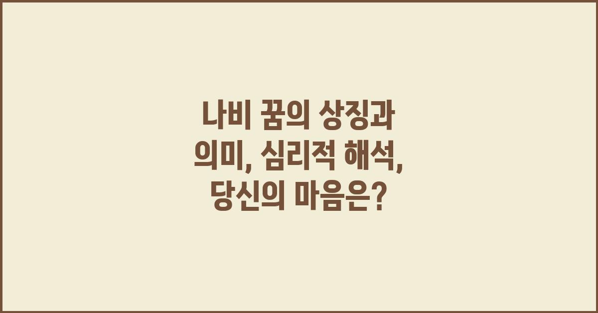 A1: 나비 꿈의 의미는 시기와 상황에 따라 달라질 수 있습니다. 일반적으로 긍정적인 변화를 상징하지만, 개인적인 감정 상태가 반영될 수도 있습니다.