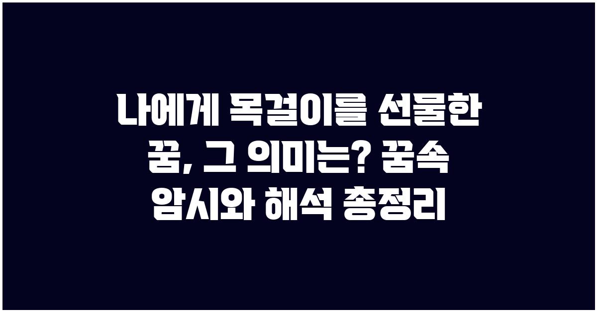 위 정보들을 바탕으로, 여러분도 나에게 목걸이를 선물한 꿈, 그 의미는?에 대해 깊이 있는 성찰을 해보시길 바랍니다. 꿈해몽은 우리가 깊이 있는 삶을 누리는 데 큰 도움이 될 수 있습니다.