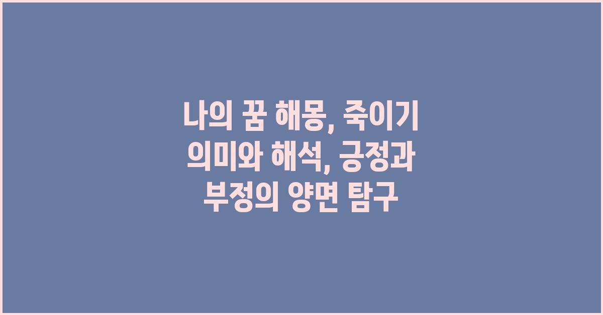 꿈은 단순한 환상이 아니며, 우리 내면의 감정을 반영하는 중요한 지표입니다. '나의 꿈 해몽: 죽이기, 긍정과 부정의 양면 | 꿈해몽 꿈풀이 꿈해석 꿈의미'에 대해 오늘 함께 알아본 것처럼, 꿈의 해몽은 매우 개인적이고 다양한 해석이 가능합니다. 이 과정을 통해 자신이 진정으로 원하는 것이 무엇인지 찾아가는 것도 의미 있는 일입니다.