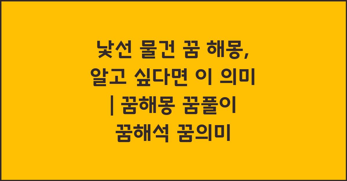 🤔 낯선 물건 꿈 해몽, 무슨 의미일까요?