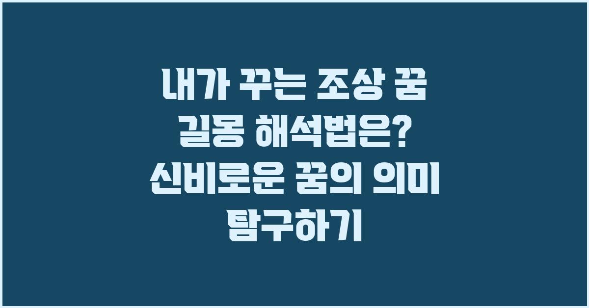 결국, 꿈은 우리의 감정과 연결된 중요한 매개체입니다. 내가 꾸는 조상 꿈 길몽 해석법 | 꿈해몽 꿈풀이 꿈해석 꿈의미를 참고하여 하나하나의 꿈이 주는 의미를 간직하길 바랍니다. 꿈을 통해 과거와 현재, 그리고 미래를 잇는 기회가 되시길 기원합니다!
