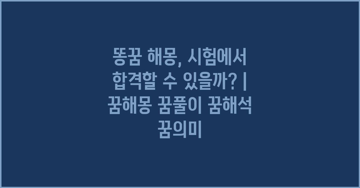 여기서 또 하나 궁금한 점은, 똥꿈과 합격 가능성이 어떻게 연결되는가 하는 것입니다. 똥꿈 해몽: 시험, 합격 가능성은? | 꿈해몽 꿈풀이 꿈해석 꿈의미를 통해 본다면, 똥꿈은 대부분 ‘변화’를 나타내며, 이는 합격의 가능성을 키울 수도 있음을 암시합니다.
