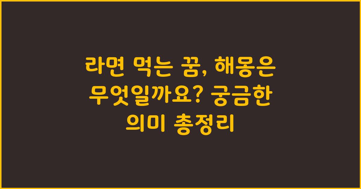 🧘♀️ 라면 꿈의 해석 어렵지 않아요!