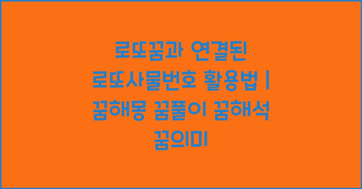 이번 포스팅에서는 꿈과 로또 사물번호의 연관성을 살펴보며, 이를 통해 꿈 해몽과 꿈 풀이, 꿈의 의미를 알아보겠습니다. 여러분도 로또꿈을 통해 나만의 행운을 찾는 방법을 보여드릴게요!