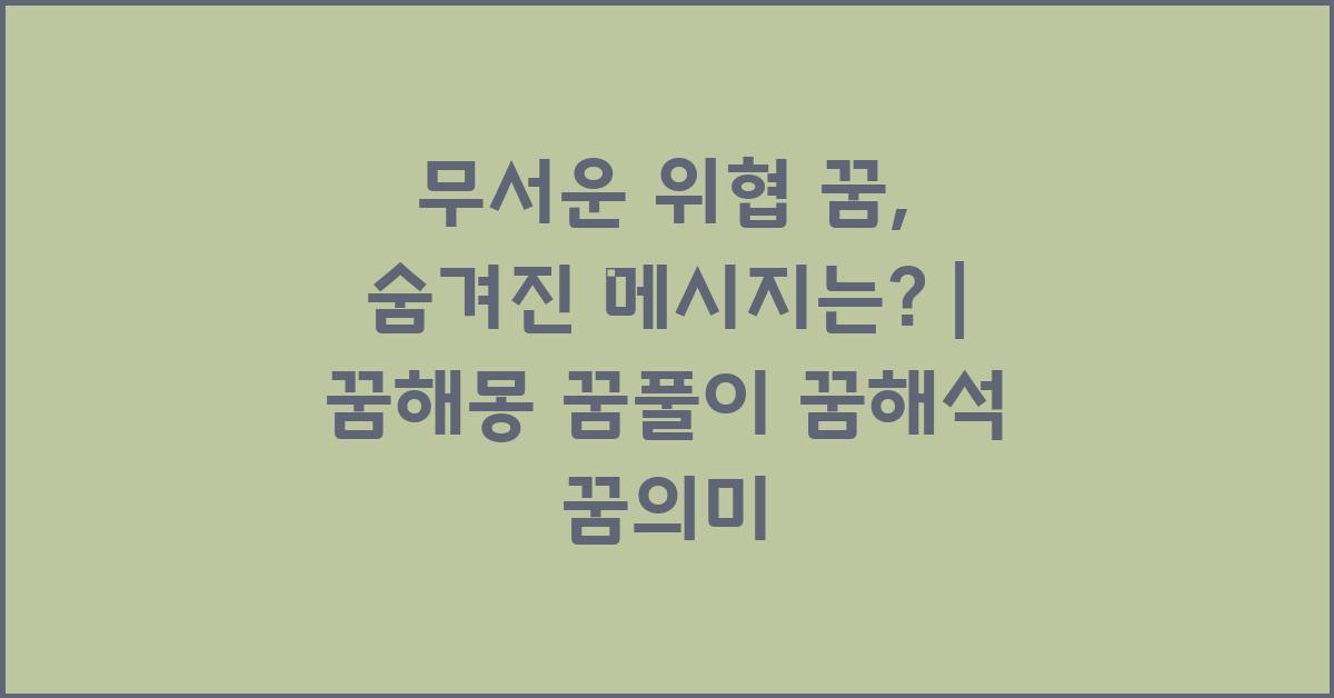 꿈은 우리의 무의식이 만들어내는 신비로운 영역이죠. 우리는 무서운 위협 꿈을 꿀 때, 종종 불안과 두려움으로 가득 차죠. 이 꿈들은 대개 현재의 스트레스나 내면의 불안감을 반영할 수 있습니다. 예를 들어, 최근에 직장에서의 압박이나 개인적인 문제로 인해 스트레스를 받는다면, 그런 감정이 꿈에서 억압된 형태로 나타날 수 있습니다. 이러한 꿈을 꿨을 때 여러분은 '내가 뭘 잘못했을까?'라는 질문을 하게 됩니다. 무서운 위협 꿈, 긍정적인 해석은? 생각해보면, 이 꿈은 우리에게 필요한 변화를 암시하는 메시지를 담고 있을 수 있습니다.