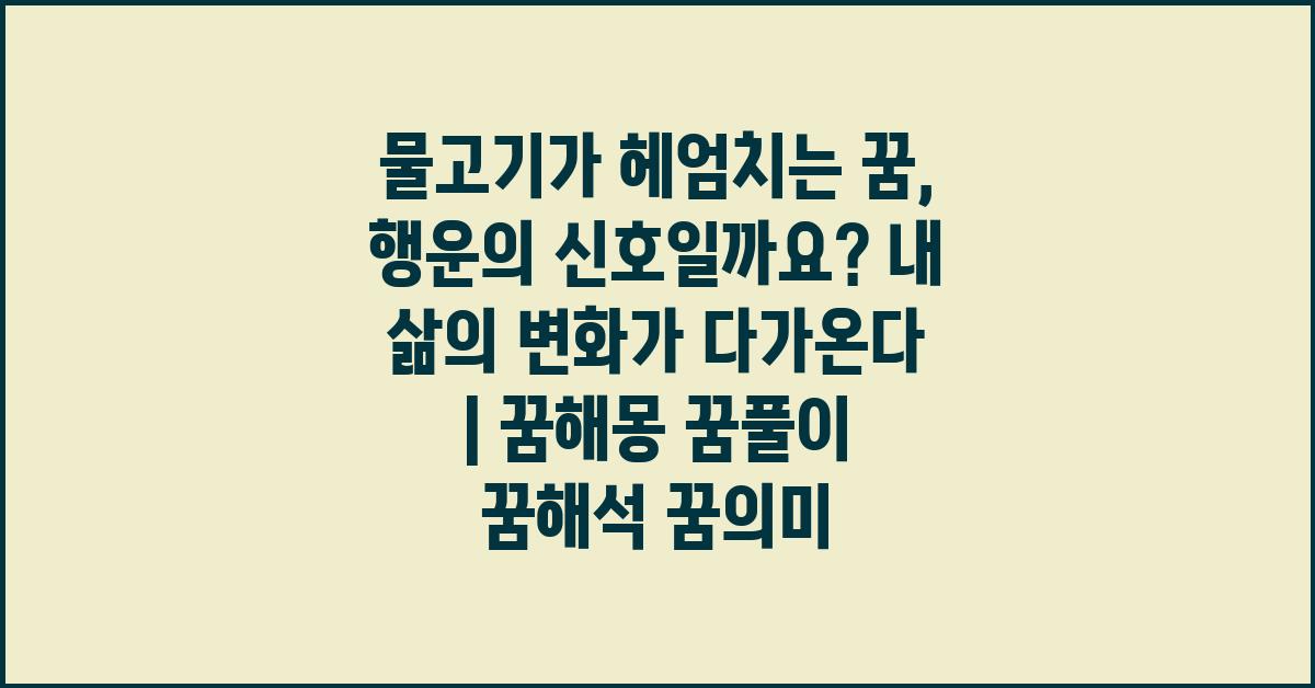 물고기가 헤엄치는 꿈, 행운의 신호일까요? 이는 단순한 해석을 넘어, 우리 삶에서 다가오는 변화의 중요한 상징으로 다가올 수 있습니다. 물고기의 상징을 통해 우리는 감정의 흐름을 이해하고, 내면의 갈증을 해소할 수 있는 기회를 가질 수 있습니다. 모든 꿈이 전하는 메시지를 존중하며, 우리의 삶 속에서 긍정적인 변화를 만들어 나가길 바랍니다.