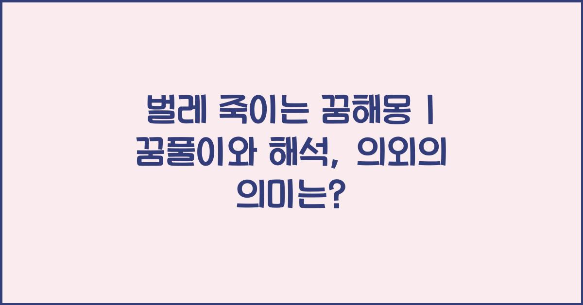 꿈은 우리의 무의식을 들여다볼 수 있는 창입니다. 그 중에서도 벌레를 죽이는 꿈은 특히 많은 사람들에게 혼란스러움을 줄 수 있습니다. 꿈속에서 벌레를 죽였다는 것은 단순한 행동일 수 있지만, 그 뒤에는 다양한 심리적, 정신적 의미가 숨겨져 있을 수 있습니다. 이번 글에서는 '벌레 죽이는 꿈해몽 | 꿈해몽 꿈풀이 꿈해석 꿈의미'에 대한 여러 가지 해석을 시도해 보겠습니다.