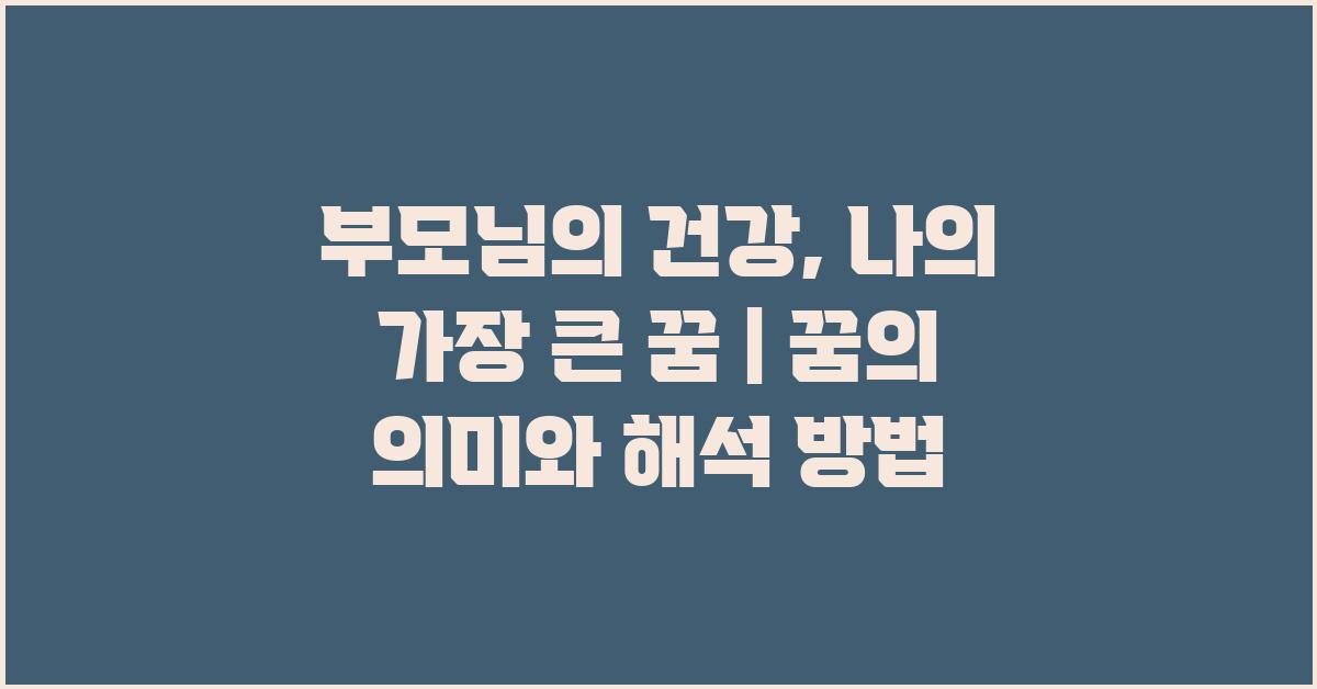 부모님의 건강, 나의 가장 큰 꿈 | 꿈해몽 꿈풀이 꿈해석 꿈의미는 서로 연결되어 있습니다. 내 꿈을 이루는 발판에는 부모님의 건강이 자리 잡고 있기 때문입니다. 부모님의 건강이 좋아야 우리가 추구하는 꿈도 더 확고해지겠죠. 제가 어렸을 때부터 꿈꾸던 직업은 부모님이 만족하고 행복해하셨던 바로 그 직업입니다. 그래서 오늘 더 나아가고 싶은 저의 꿈은 부모님이 건강하고 행복하실 때 더욱 빛난다는 생각이 듭니다.