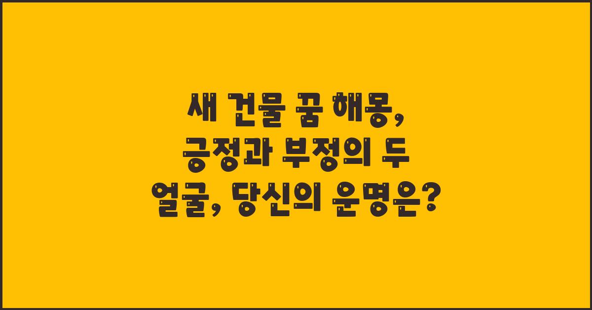 꿈은 종종 우리에게 무의식의 메시지를 전달합니다. 특히 새 건물 꿈 해몽은 심리적인 상태나 앞으로의 운세를 암시할 수 있는 중요한 요소들 중 하나입니다. 새 건물이 나타나는 꿈은 대개 새로운 시작, 가능성, 혹은 변화에 대한 기대를 내포하고 있습니다. 그러나 이 꿈은 동시에 부정적인 의미로도 해석될 수 있어요.