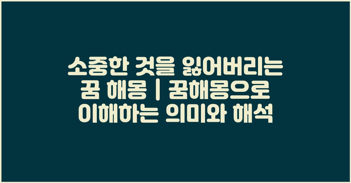 꿈은 종종 우리의 감정과 내면의 소리를 반영하는 신비로운 창입니다. 그 중 '소중한 것을 잃어버리는 꿈 해몽 | 꿈해몽 꿈풀이 꿈해석 꿈의미'는 우리 삶에서 가장 가치 있는 것들을 잃게 되는 불안한 경험으로, 이러한 꿈은 때때로 우리의 두려움이나 불확실성을 드러냅니다. 꿈 속에서 소중한 것들을 잃어버리는 상황은 실생활에서도 비슷한 감정을 느끼게 만들며, 우리는 자신이 진정으로 중요시하는 것을 재조명하게 됩니다.