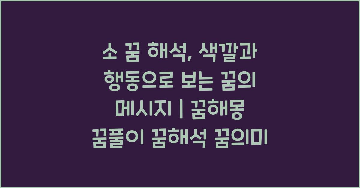 꿈 속에서 소는 매우 의미 있는 상징입니다. 여러 문화권에서는 소를 부, 풍요, 근면의 상징으로 여기며, 꿈속에서 소의 행동과 색깔은 그 의미를 더욱 깊게 만들어줍니다. 소 꿈 해석: 꿈속 소의 색깔과 행동에 따른 의미 | 꿈해몽 꿈풀이 꿈해석 꿈의미를 통해 다양한 관점에서 이 꿈을 들여다보겠습니다. 여러분은 혹시 소에 대해 어떤 느낌을 가지시나요? 어린 시절, 목장에서 뛰어놀던 기억을 떠올리며 추억에 잠기기도 하겠죠. 이런 경험이 꿈에 반영될 수도 있습니다!