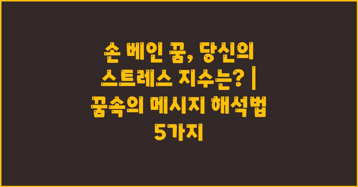 손 베인 꿈과 당신의 스트레스 지수는? 이 질문은 우리 삶의 중요한 지표가 될 수 있습니다. 꿈의 메시지를 잘 해석하고, 이를 통해 더 나은 삶을 위해 나아가세요!