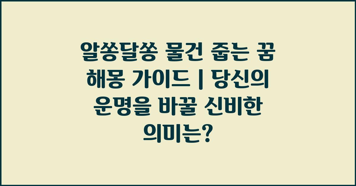우리의 꿈에서 어떤 물건들이 자주 등장할까요? 예를 들어, 잃어버린 동전이나 귀중한 보석은 금전적 풍요를, 오래된 사진은 추억과 회상을 의미할 수 있습니다. 이러한 물건들은 꿈 해몽의 중요한 기준이 됩니다. 알쏭달쏭 물건 줍는 꿈 해몽 가이드 | 꿈해몽 꿈풀이 꿈해석 꿈의미를 통해 골라보는 재미도 함께 느껴 보세요!