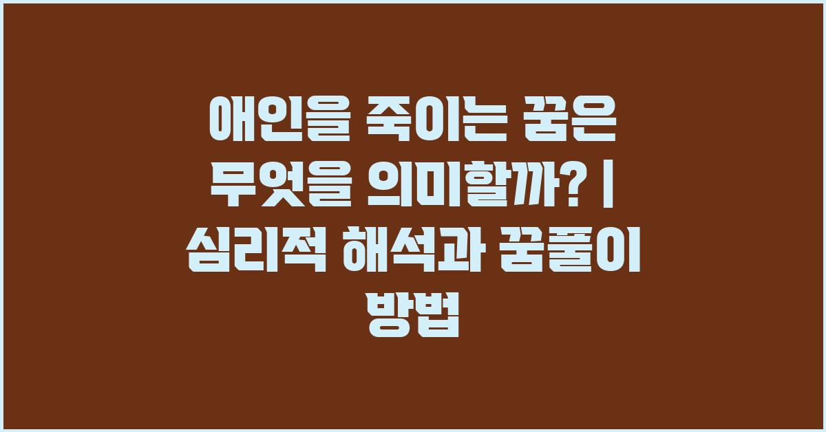 꿈이라는 것은 우리의 subconscious mind가 만들어내는 또 다른 세계입니다. 특별히 애인을 죽이는 꿈은 듣기에도 간담이 서늘해지는 내용인데요. 그렇다면 애인을 죽이는 꿈은 무엇을 의미할까? | 꿈해몽 꿈풀이 꿈해석 꿈의미 관점에서 바라보면 여러 가지 심리적 요소가 얽혀 있습니다.
