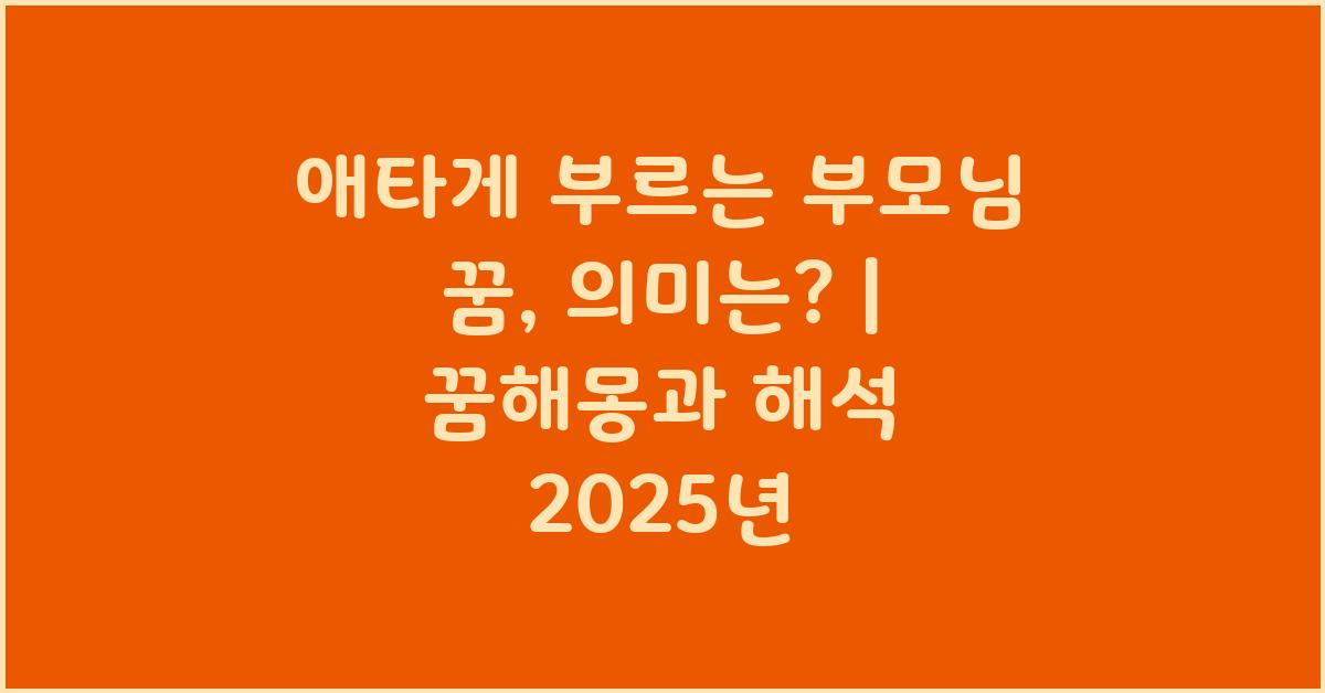애타게 부르는 부모님 꿈, 뭘 의미할까? | 꿈해몽 꿈풀이 꿈해석 꿈의미를 생각하면서, 우리가 어떻게 현재의 감정을 해결할 수 있을지를 고민해볼 수 있습니다. 우선 현실에서 부모님과의 대화를 통해 감정을 나누는 것이 좋습니다. 소중한 기억을 상기시킬 수도 있고, 상처를 치유할 수도 있으며, 나아가 관계를 더욱 깊이 있게 만들어 줄 수 있습니다.
