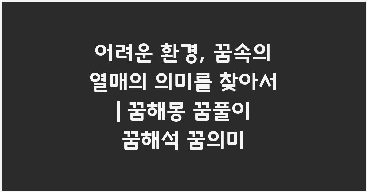 꿈속의 열매는 우리 마음속의 깊은 갈망과 무의식을 표현하는 상징적인 요소입니다. 어려운 환경 속에서 꿈속의 열매가 주는 의미는 다양합니다. 이를 해석하는 과정을 통해 우리는 보다 명확하게 자신의 감정과 생각을 이해할 수 있습니다. 즉, 꿈은 무의식적인 심리 상태를 드러내는 일종의 매개체라고 볼 수 있습니다.