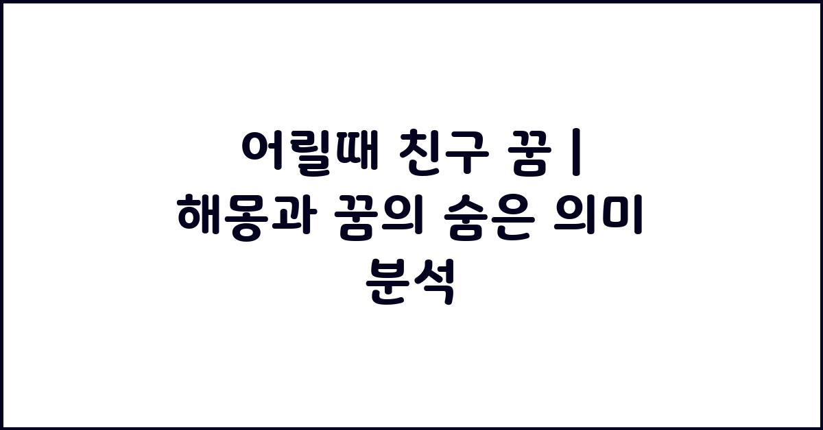 꿈속에서 오랜 친구를 만나는 것은 매우 특별한 경험입니다. 어릴 때 친구 꿈 | 꿈해몽 꿈풀이 꿈해석 꿈의미에서 이러한 꿈은 다양한 감정과 상징을 지니고 있습니다. 종종 과거의 순수함이나 잊힌 기억을 불러일으켰다고 느낄 수 있습니다. 친구는 우리에게 안전감과 친밀감을 주는 존재이기에, 그와의 꿈은 내면에서 떠나는 갈등이나 문제를 직면하게 합니다.