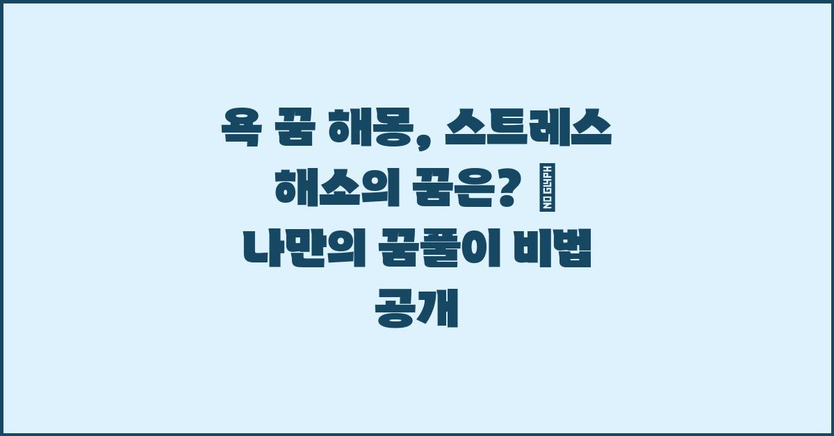 욕 꿈 해몽, 스트레스 해소의 꿈은 자주 반복되는 주제이기도 하며, 많은 사람들이 어렵게 느끼는 부분이기도 합니다. 꿈을 통해 우리가 가진 두려움이나 고민을 투영하며, 해석하는 과정은 흥미롭기 그지없습니다. 여기에 숨겨진 메시지를 발견하면 스트레스를 해소하고 더 나은 방향으로 나아갈 수 있는 기회를 제공합니다.