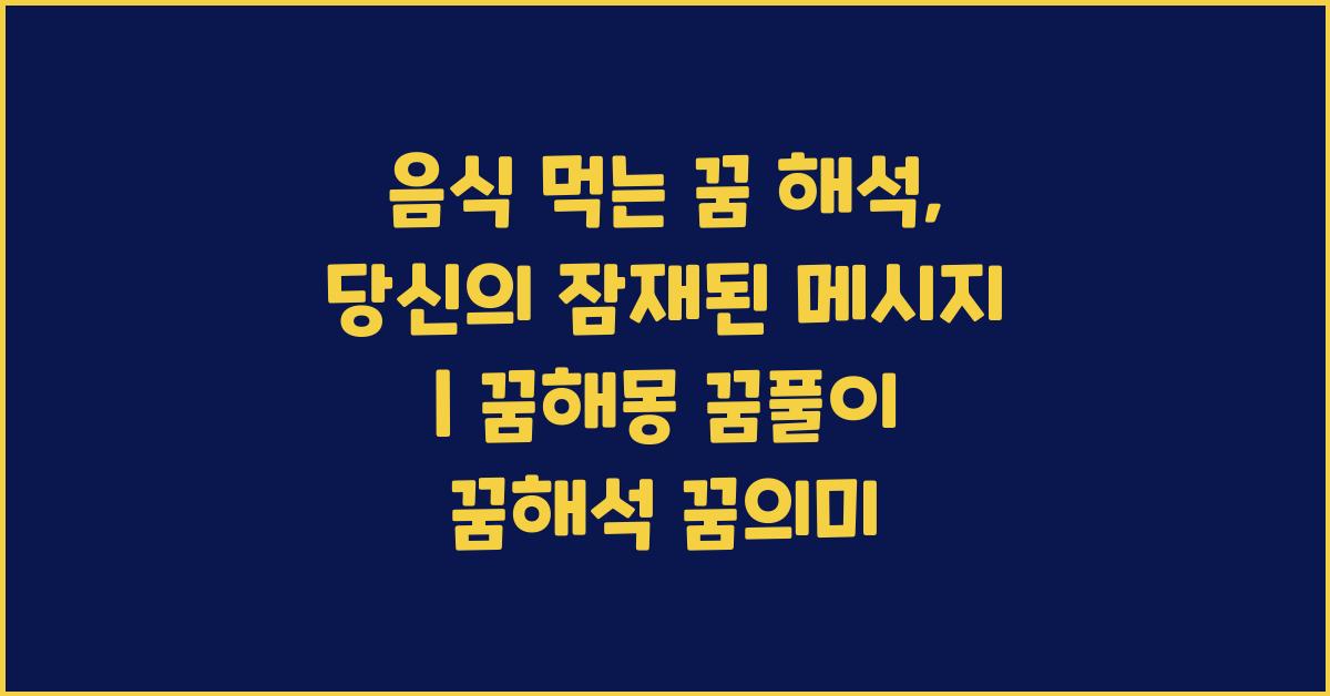 우리의 꿈은 늘 신비롭고 때로는 우리의 일상생활에 깊은 영향을 미칠 수 있습니다. 특히 음식과 관련된 꿈은 때로는 호기심과 경고의 조합으로 다가옵니다. 그렇다면 음식 먹는 꿈 해석, 꿈의 메시지를 찾아서 | 꿈해몽 꿈풀이 꿈해석 꿈의미는 어떤 의미를 지니고 있을까요?