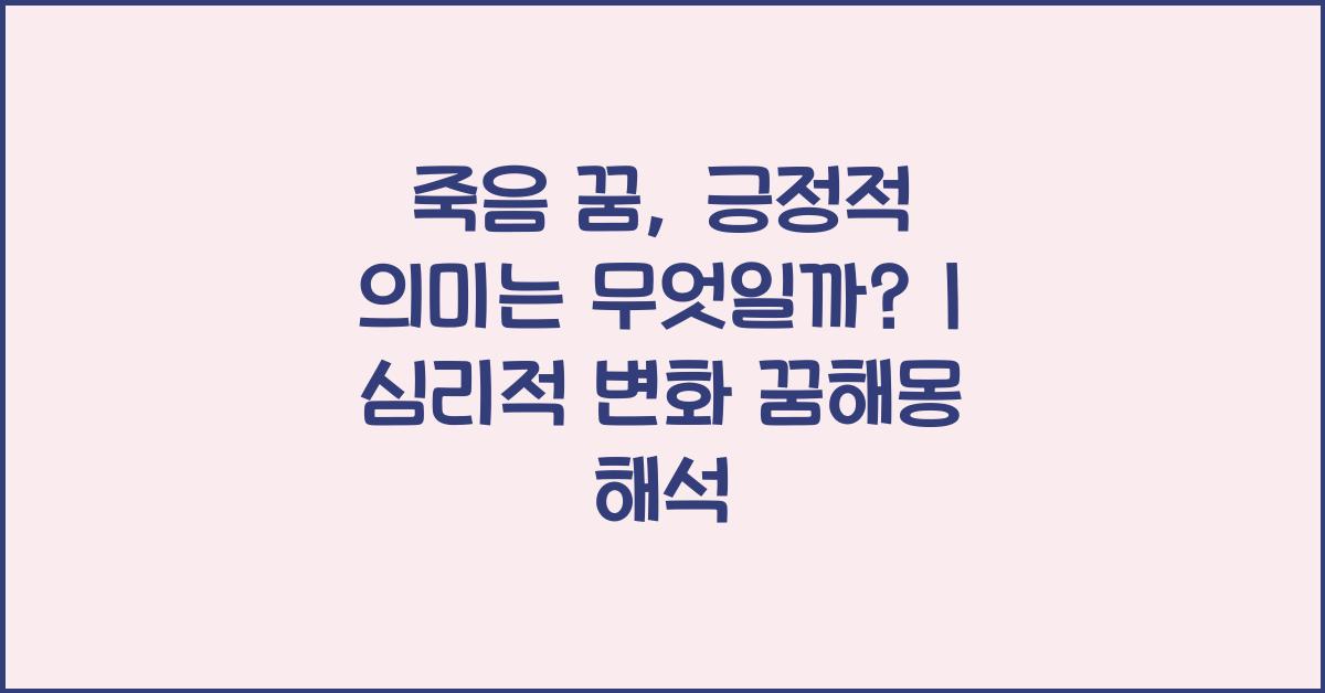 죽음 꿈은 종종 두려움이나 불안을 불러일으키지만, 긍정적인 변화의 신호일 수도 있습니다. 죽음 꿈의 심리적 변화와 해석을 통해 깊은 의미를 찾고자 합니다.