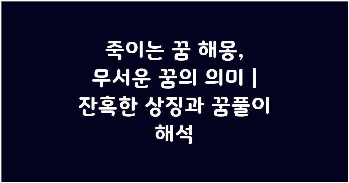 죽이는 꿈 해몽, 무서운 꿈의 의미 | 꿈해몽 꿈풀이 꿈해석 꿈의미는 단순히 악몽이 아닙니다. 우리의 무의식을 돌아보게 만들고 그것을 통해 성장할 수 있는 기회를 제공합니다. 꿈은 여러분이 자아를 더 잘 이해하고 발전시키는 데 도움을 줄 수 있는 중요한 요소입니다. 힘든 꿈으로부터 어떻게 긍정적인 변화를 이끌어낼 수 있을까요? 항상 자신의 마음을 살피고 그 의미를 찾아간다면, 무섭고 복잡한 꿈이 우리에게 주는 유익한 지혜를 발견하게 될 것입니다.