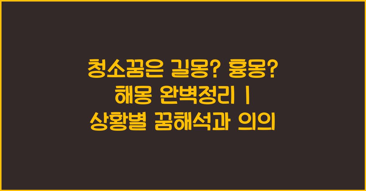 여러분, 꿈이란 말로 표현할 수 없는 신비한 세계입니다. 특히, '청소꿈'은 많은 사람들에게 길몽인지 흉몽인지에 대한 갈등을 안겨줍니다. 개인적으로, 제 꿈속에서 청소를 하는 순간은 늘 혼란스러움과 동시에 뭔가 깨끗해진 느낌이 들곤 했습니다. 오늘은 이러한 청소꿈이 가진 의미를 함께 탐구해보려 합니다. 청소꿈은 길몽? 흉몽? 해몽 완벽정리 | 꿈해몽 꿈풀이 꿈해석 꿈의미에 대해 알아보면서 여러분의 꿈이 어떤 메시지를 담고 있는지 확인해 보시기 바랍니다.