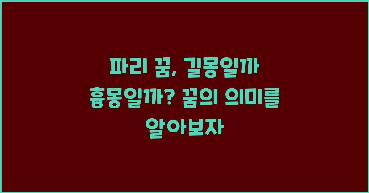 반면, 파리 꿈이 반드시 길몽이라고만 할 수는 없습니다. 꿈의 내용과 본인의 감정에 따라 흉몽으로 해석될 수도 있는 요소가 존재합니다. 예를 들어, 파리에서 길을 잃거나 불안감을 느끼는 꿈을 꿨다면, 이는 당신의 삶에서 방향을 잃고 있다는 신호일 수 있습니다. 여기서 고민하는 감정이 꿈의 본질을 형성합니다.