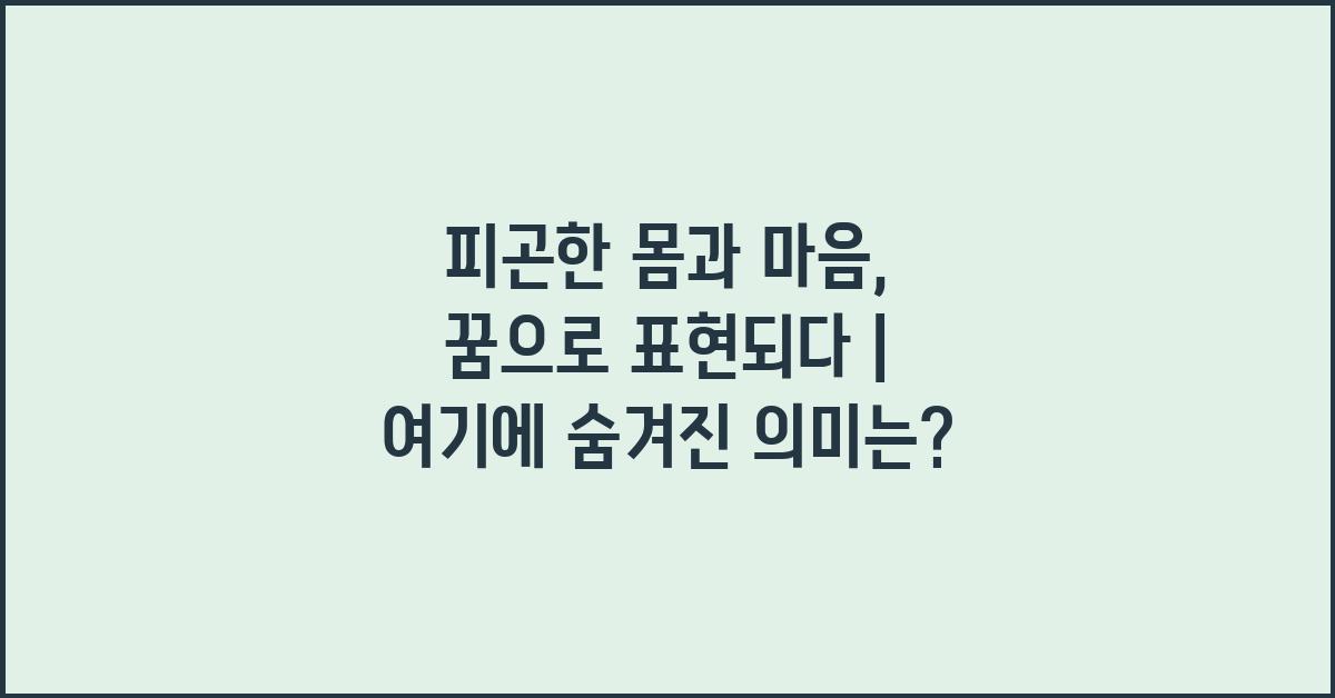 ✨ 피곤한 몸과 마음: 꿈의 의미