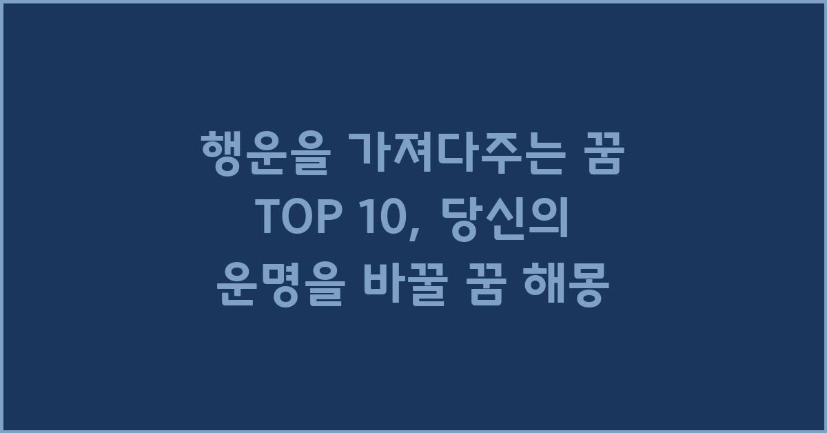 🌟 행운을 가져다주는 꿈 TOP 10 | 꿈해몽 꿈풀이 꿈해석 꿈의미