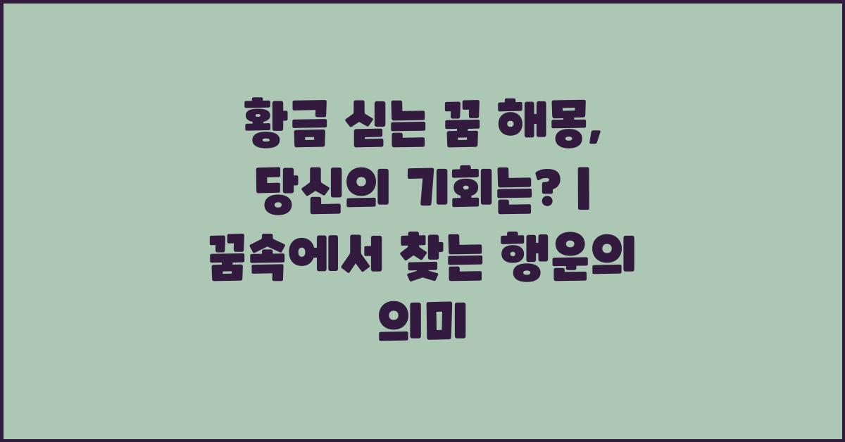 황금은 인류 역사상 가장 가치 있는 자원 중 하나로 여겨져 왔습니다. 이는 단순한 물질적인 가치뿐 아니라, 우리의 꿈, 목표, 그리고 희망과도 깊은 연관이 있습니다. 따라서 황금 싣는 꿈 해몽, 당신의 기회는? | 꿈해몽 꿈풀이 꿈해석 꿈의미를 통해 우리는 인생에서 다가올 좋은 기회들에 대해 예측할 수 있는 기회를 갖게 됩니다. 최근 저는 황금과 관련된 꿈을 꾸었는데, 그 내용이 매력적이어서 강렬한 인상을 주었습니다. 꿈속에서 황금을 싣는 장면은 실질적으로 저에게 어떤 기회를 의미하고 있을까요?
