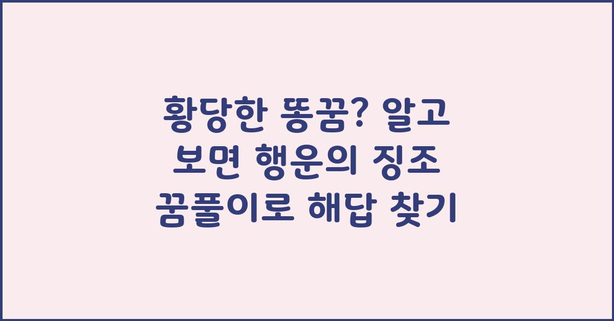 우리는 꿈을 꾸면서 다양한 이미지를 보게 됩니다. 그 중에서도 황당한 꿈의 대명사, 바로 '똥꿈'이죠. 꿈 속에서 똥을 보는 것, 이건 참으로 황당하고 웃기기까지 합니다. 하지만 여러분, 혹시 아셨나요? 황당한 똥꿈? 알고 보면 행운의 징조!라는 사실을! 꿈에는 뜻이 있고, 그 해석이 행운을 가져다줄 수 있습니다. 이 글을 통해 꿈의 진정한 의미를 알아보겠습니다.